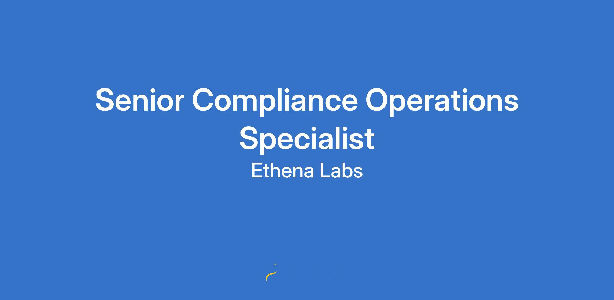 The Senior Compliance Operations Specialist will be a key supporting member of Ethenaâs compliance function, working directly with the Compliance Manager to ensure our internal processes scale efficiently and meet evolving regulatory and partner expectations. This role is critical to maintaining operational excellence across onboarding, investor whitelisting, due diligence management, and blockchain investigations â all within the fast-paced, crypto-native environment of Ethena.